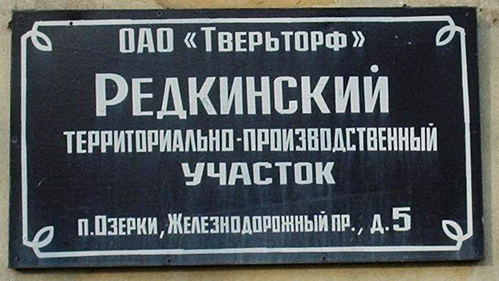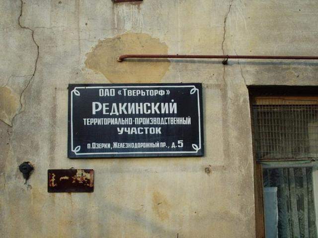 «Редкинский территориально-производственный участок ОАО «Тверьторф» (табличка у двери).