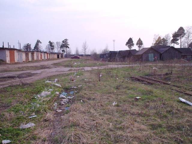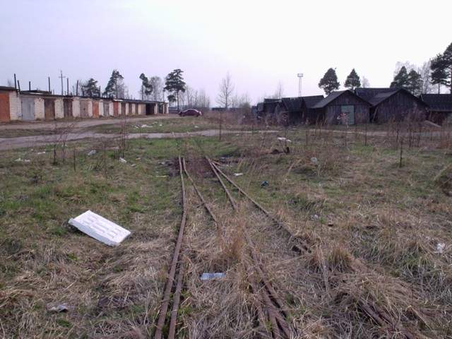 Впереди - депо узкоколейной железной дороги Редкинского ППЖТ.