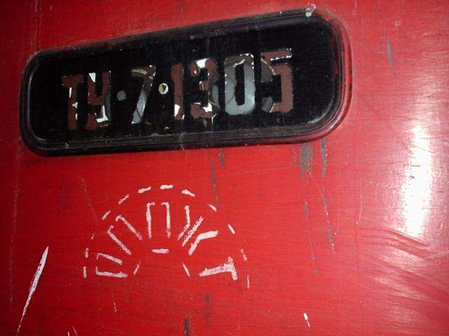 Тепловоз ТУ7-1305, стоящий в депо - стеклянная табличка с номером.