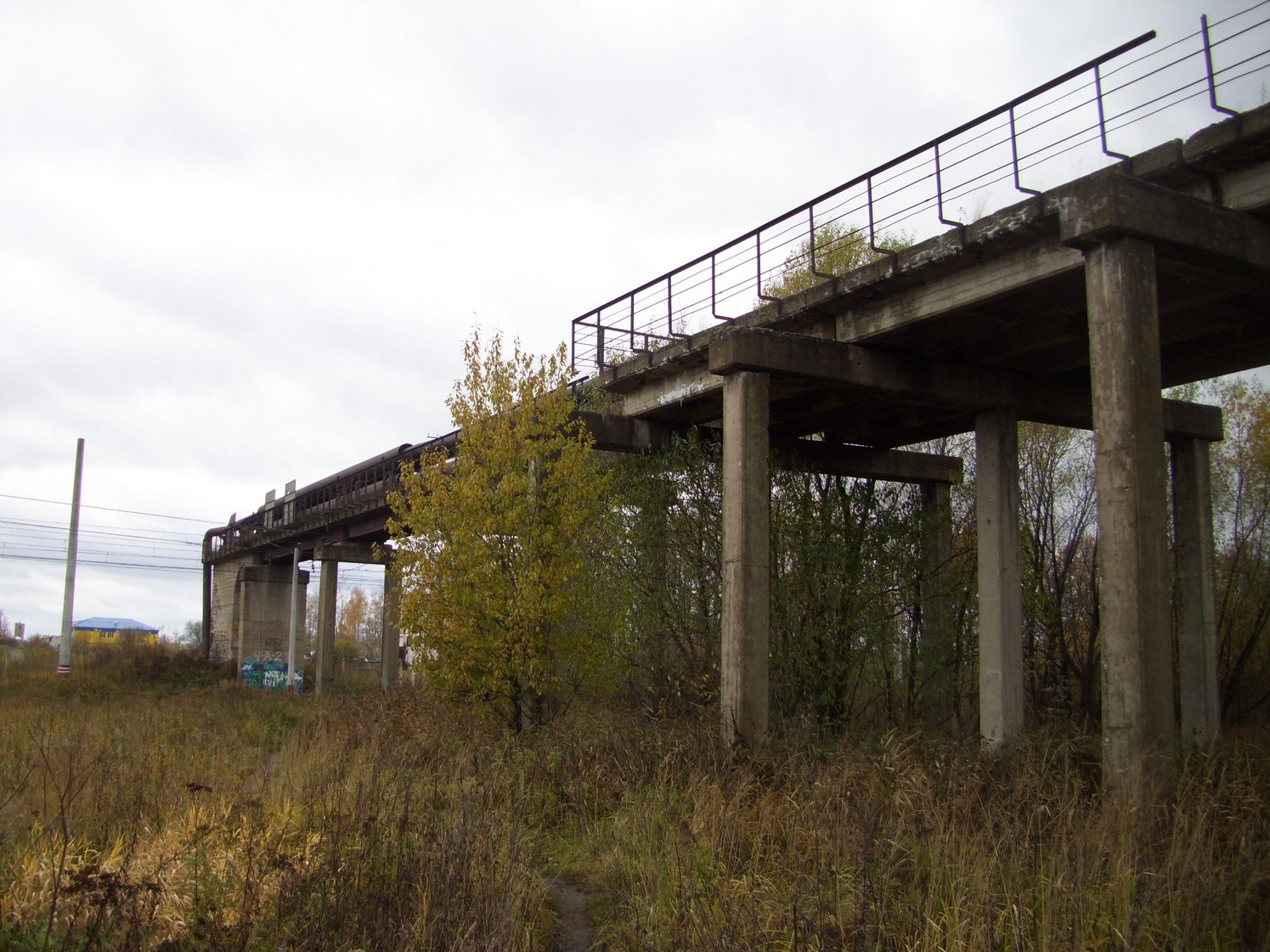 Город Тверь. Заброшенный путепровод узкоколейной железной дороги над магистральной железной дорогой