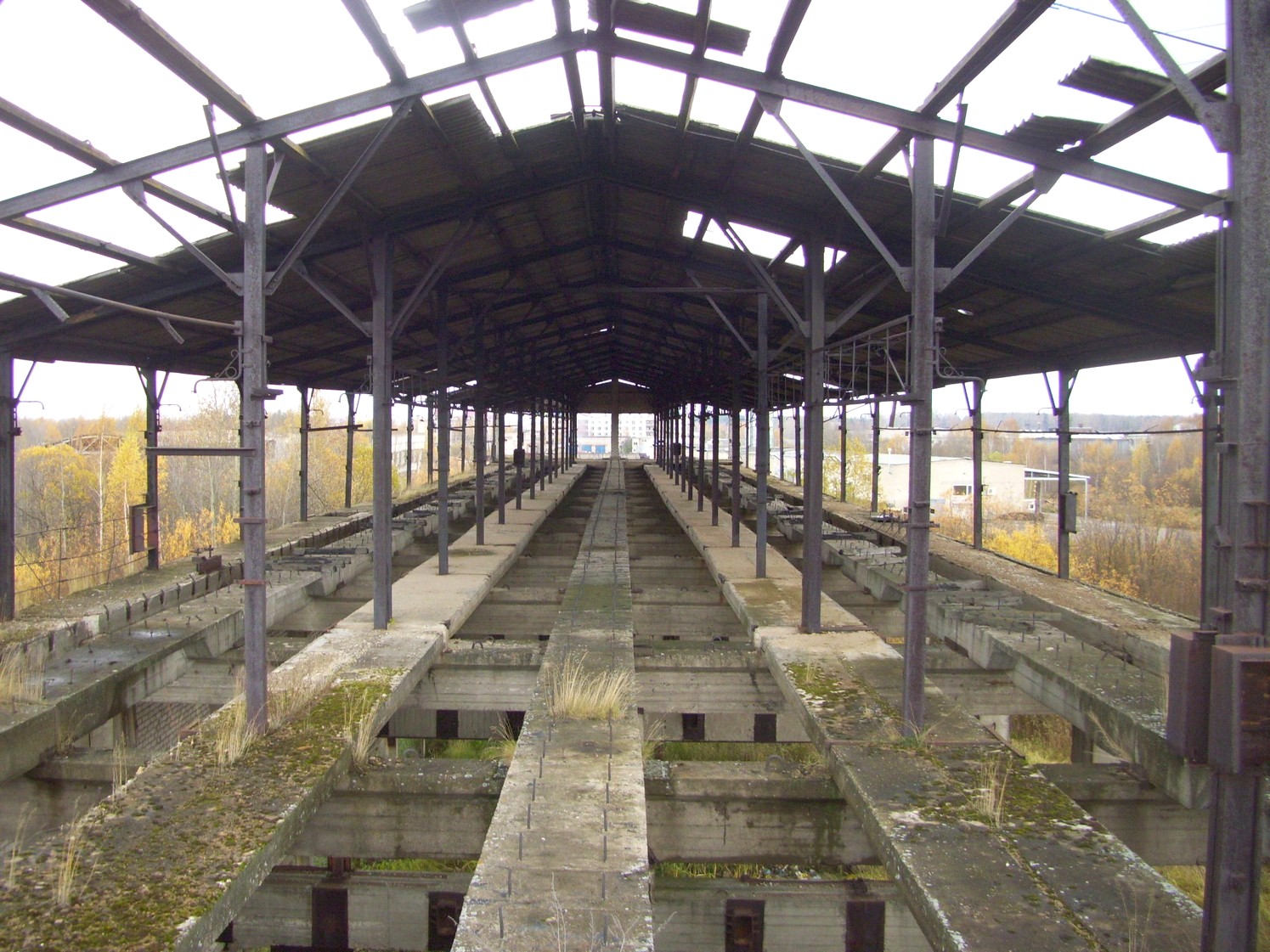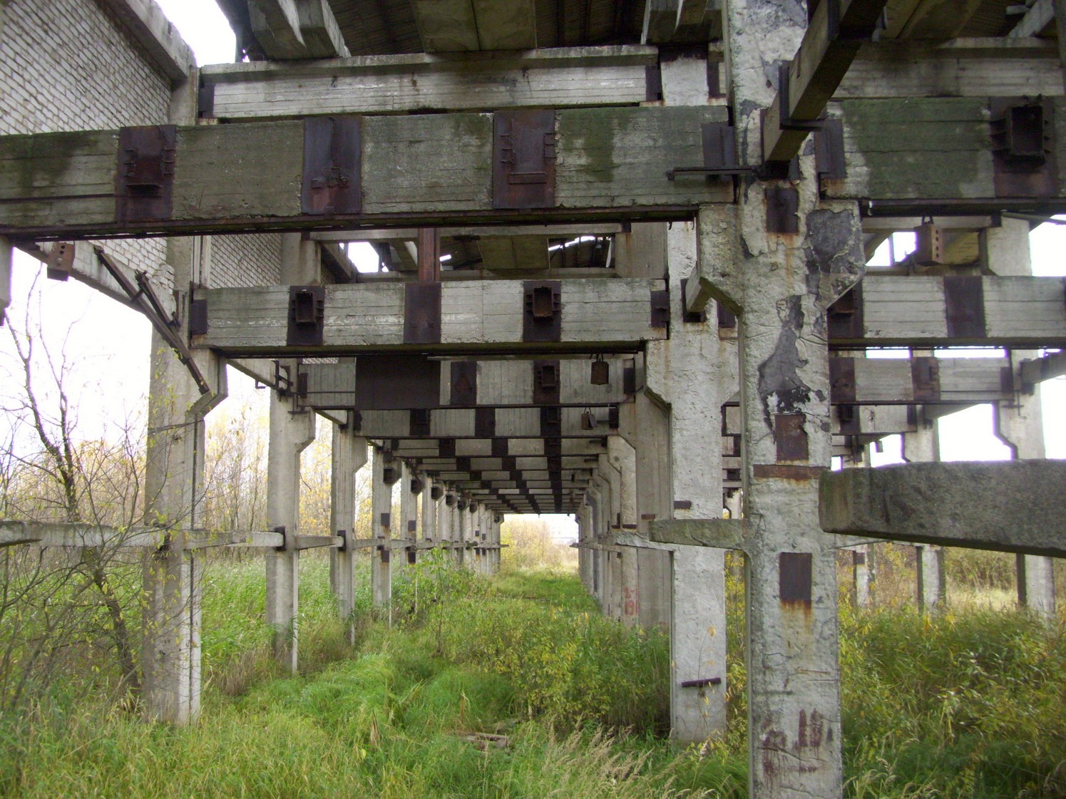 Нижний ярус заброшенной перегрузочной эстакады. Когда-то здесь находились пути широкой колеи,