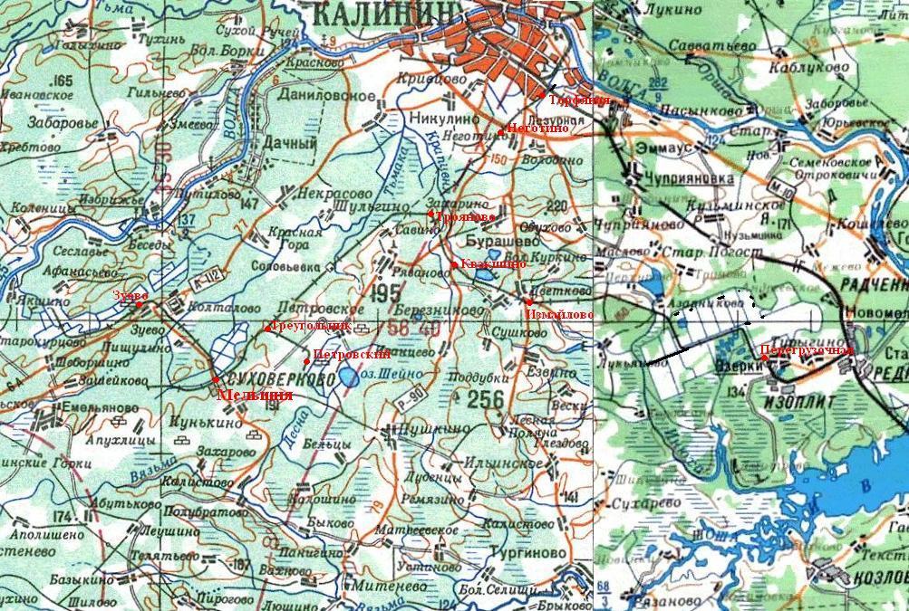 Узкоколейная железная дорога на топографической карте масштаба 1:200 000 (фрагмент «регионального атласа «Тверская