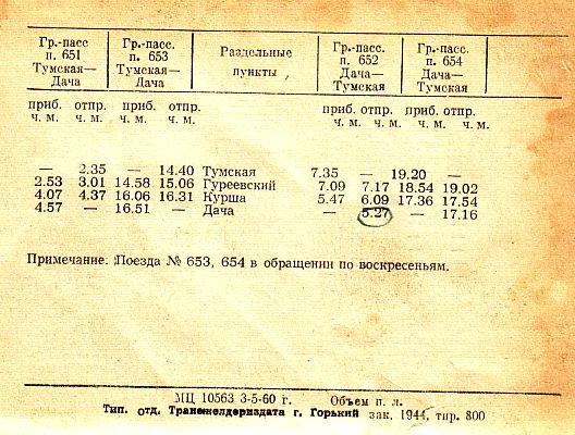 участок Тумская — Гуреевский — Дача (грузопассажирские поезда).