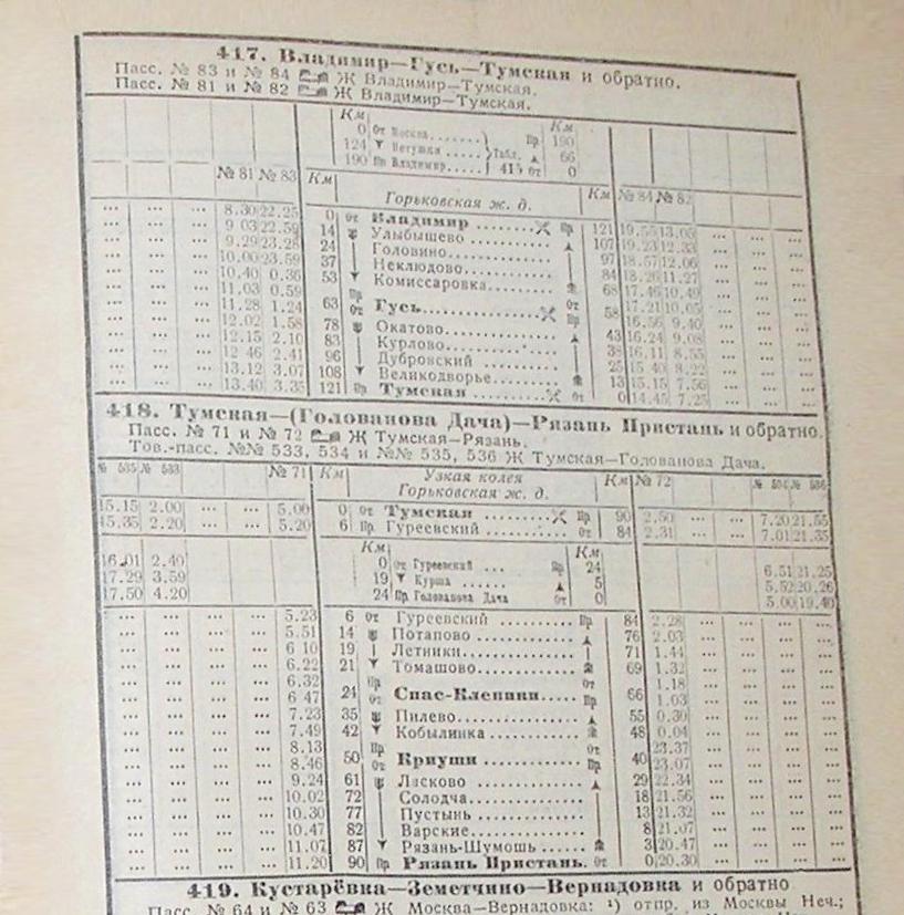 РЯЗАНСКО-ВЛАДИМИРСКАЯ УЗКОКОЛЕЙНАЯ ЖЕЛЕЗНАЯ ДОРОГА РАСПИСАНИЯ ДВИЖЕНИЯ ПОЕЗДОВ
