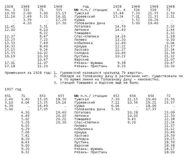 Расписания движения пассажирских поездов за разные годы, полученные от Д. Серскова.