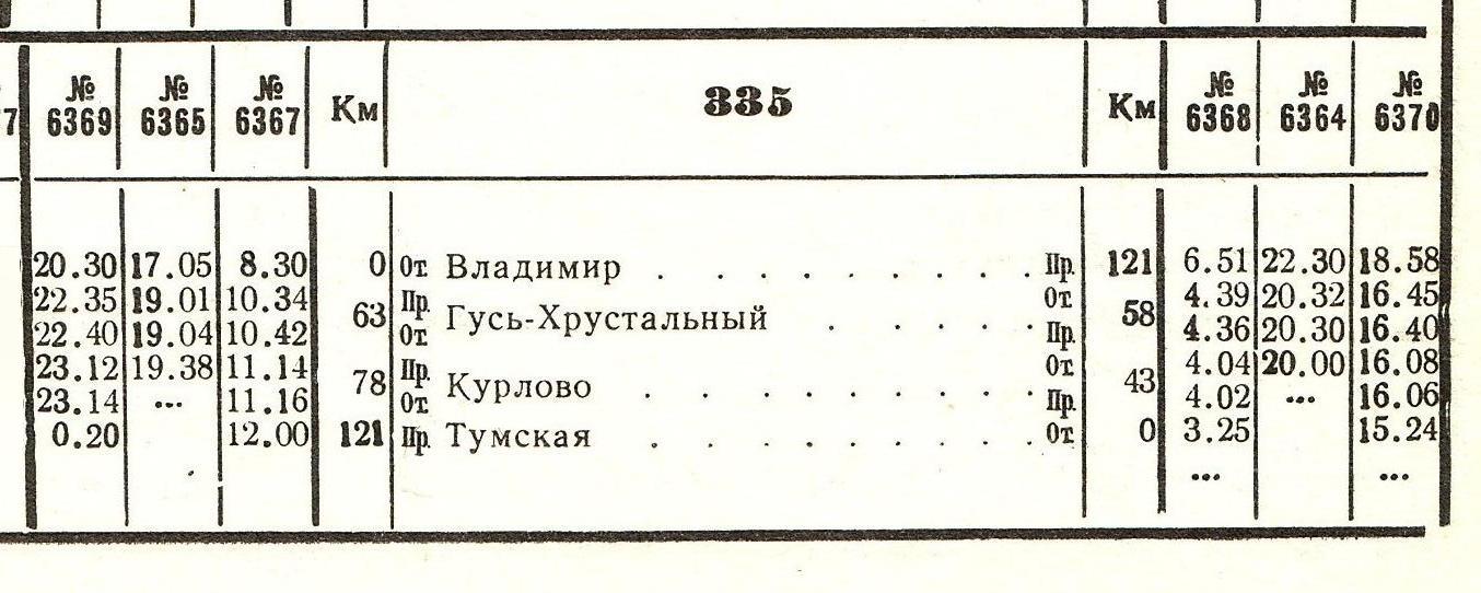 ЖЕЛЕЗНОДОРОЖНАЯ ЛИНИЯ ВЛАДИМИР — ТУМСКАЯ РАСПИСАНИЯ ДВИЖЕНИЯ ПОЕЗДОВ