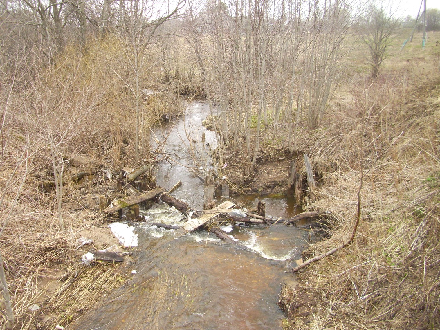 Разрушенный мост через реку Шашка, расположенный немногим севернее станции Зубарёво.