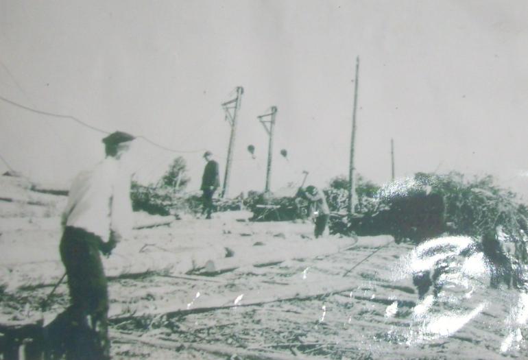 «Вывозка леса по узкоколейной железной дороге в Октябрьском леспромхозе».