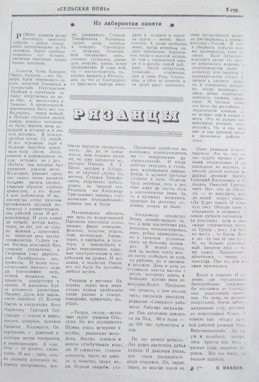 Публикация «Шиянов Бор», автор — известный лесник и краевед из посёлка Зубарёво П. Иванов.