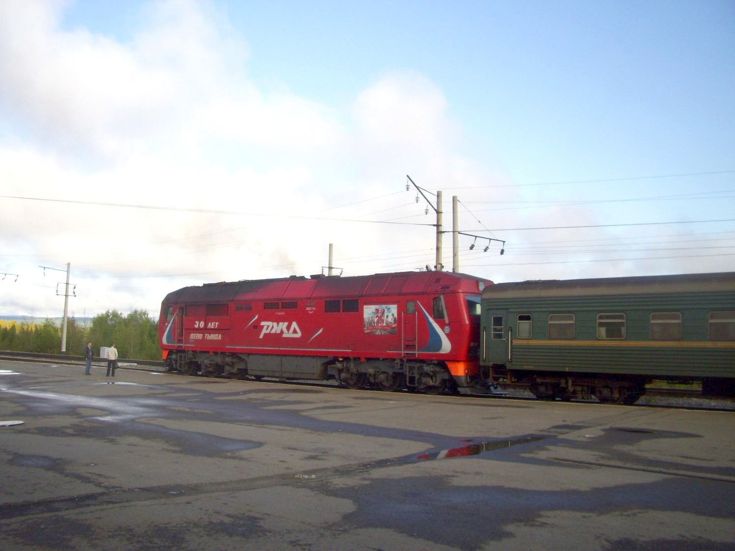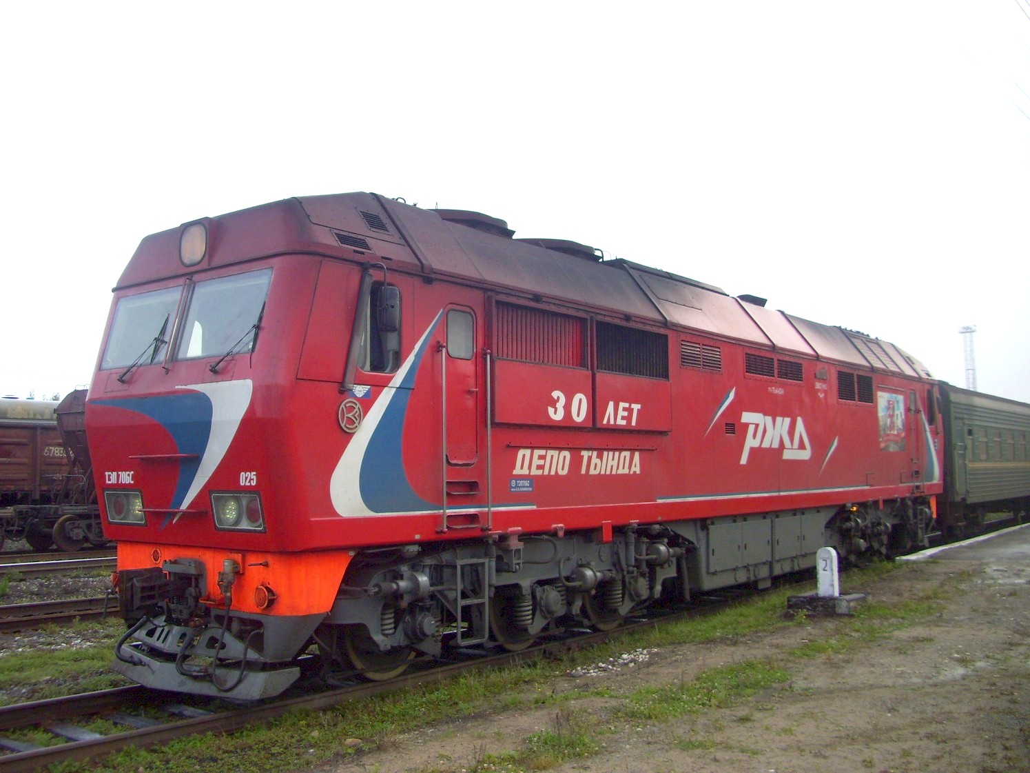 Тепловоз ТЭП70БС-025 с пассажирским поездом Комсомольск - Тында на станции Ургал I.