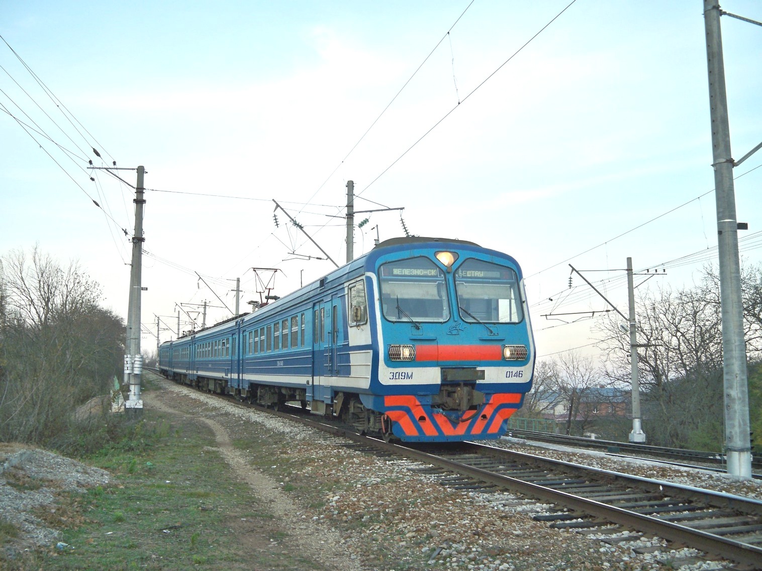 Электропоезд ЭД9М-0146 из Железноводска прибывает на станцию Бештау.