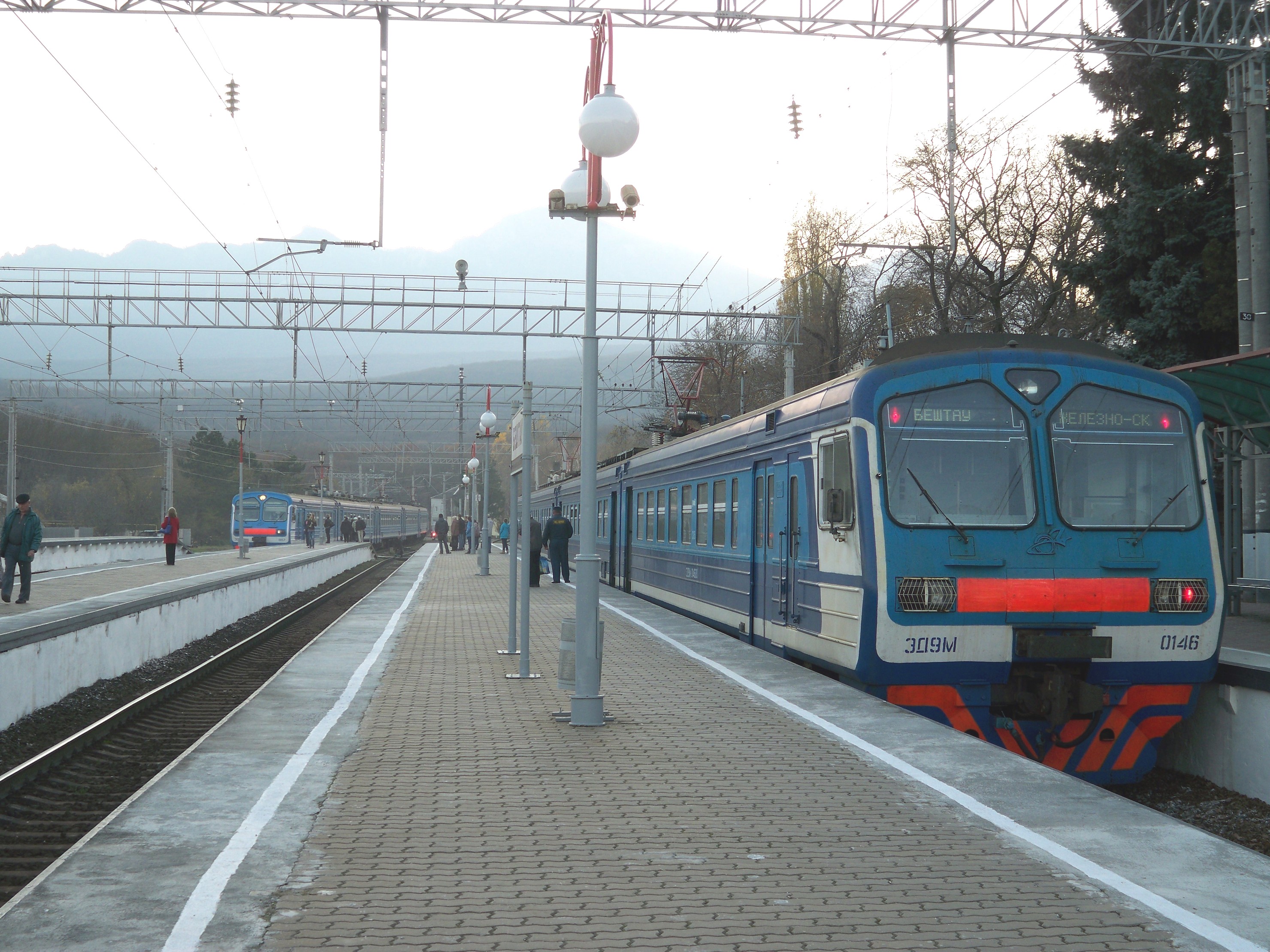 Электропоезд ЭД9М-0146 из Железноводска прибыл на станцию Бештау.