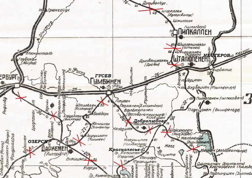 Железнодорожная линия на «Схеме железных дорог Восточной Пруссии», изданной в 1944 году на основе карты