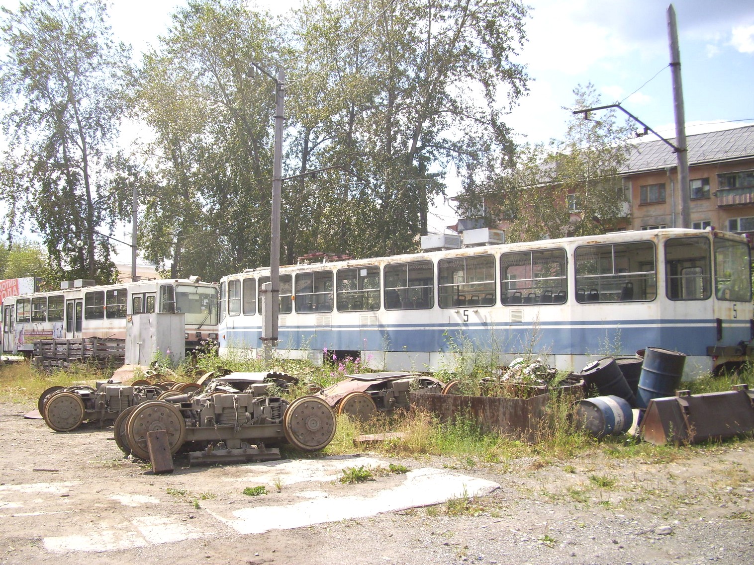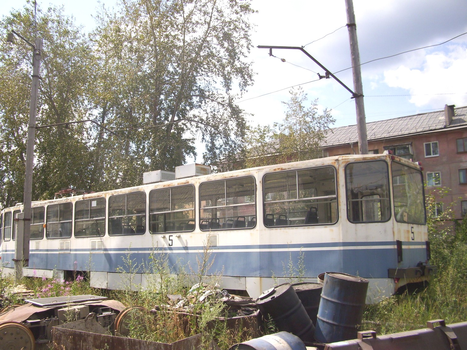 Вагон КТМ-5 (71-605) с «бортовым» номером 2 на разъезде у трамвайного депо.