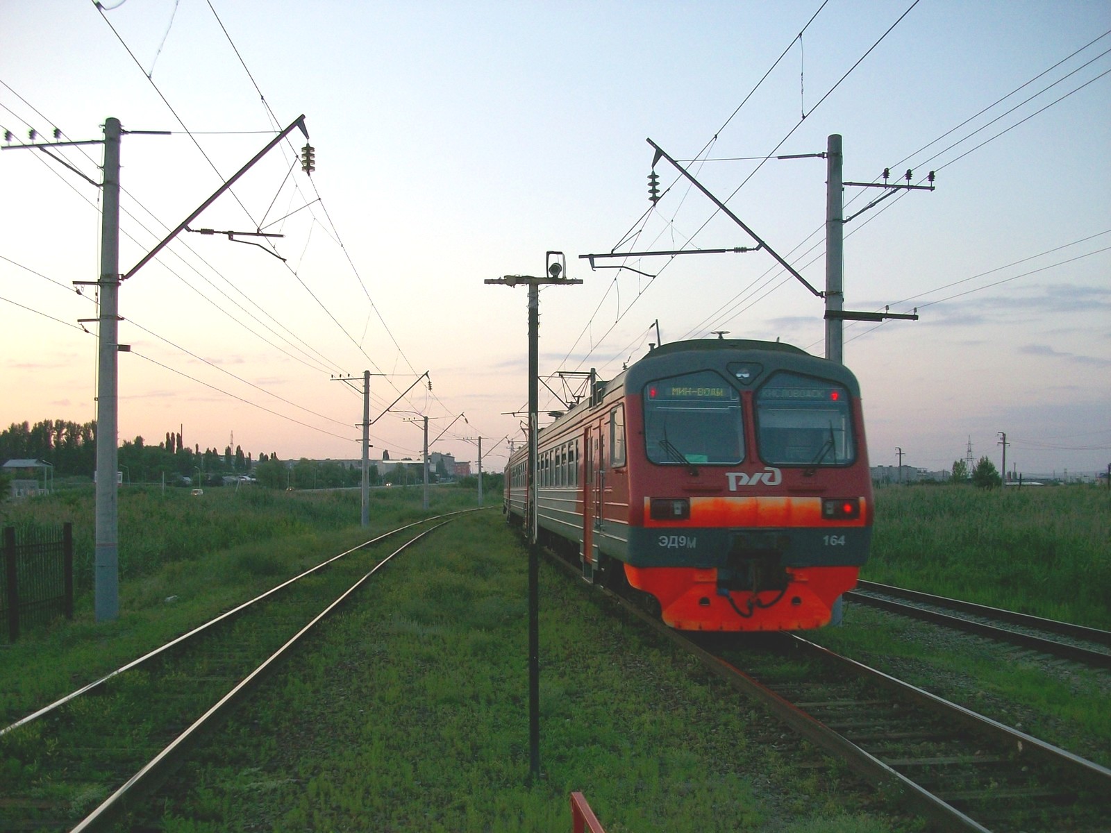 5 км. Электропоезд ЭД9М-164 удаляется в сторону Минеральных Вод.