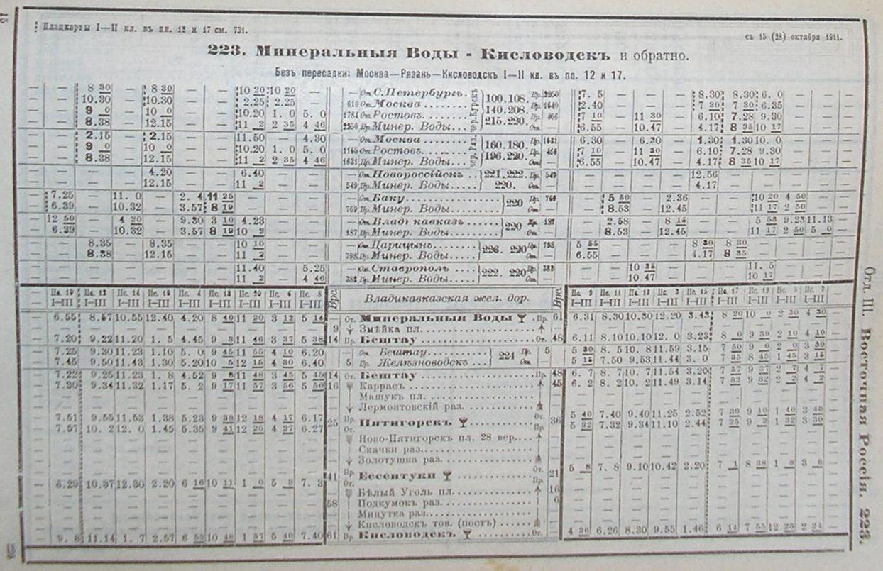 и других пассажирских сообщений»). Направление Кисловодск — Минеральные Воды.