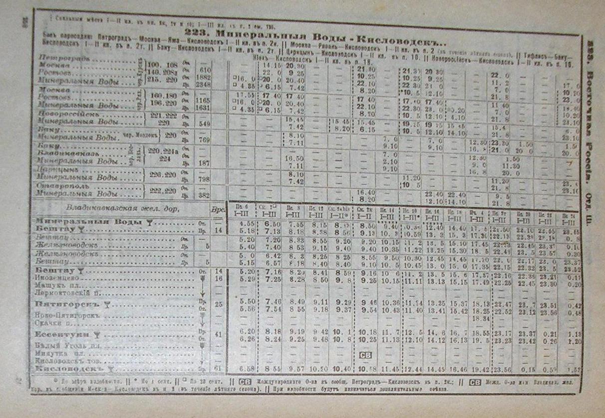 Расписание движения поездов с мая 1917 года (из «Официального указателя железнодорожных