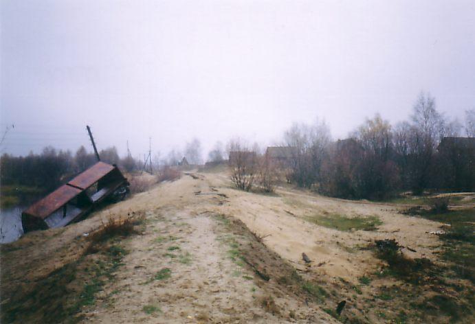 Bид в сторону центра посёлка. Слева — брошенные дрезины — «пионерки».
