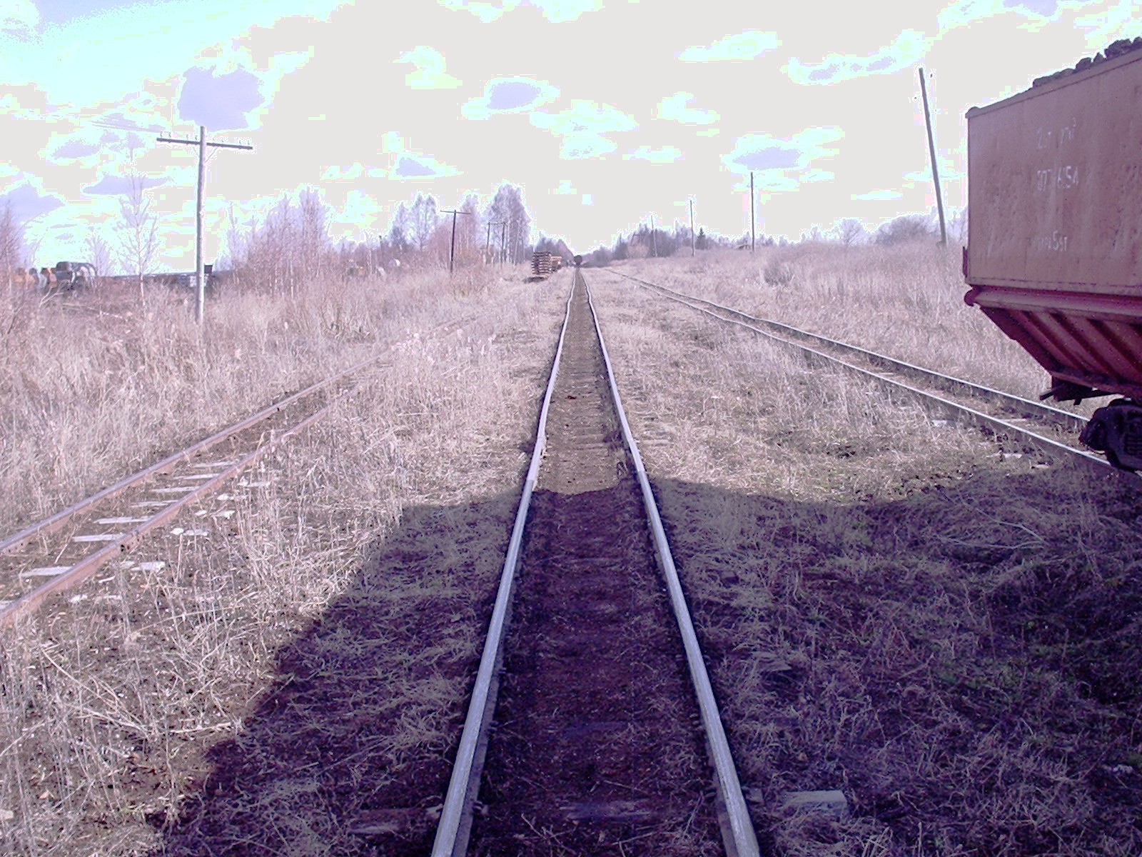 Впереди находится разъезд №9. Вид в южном направлении. Время 10:49.