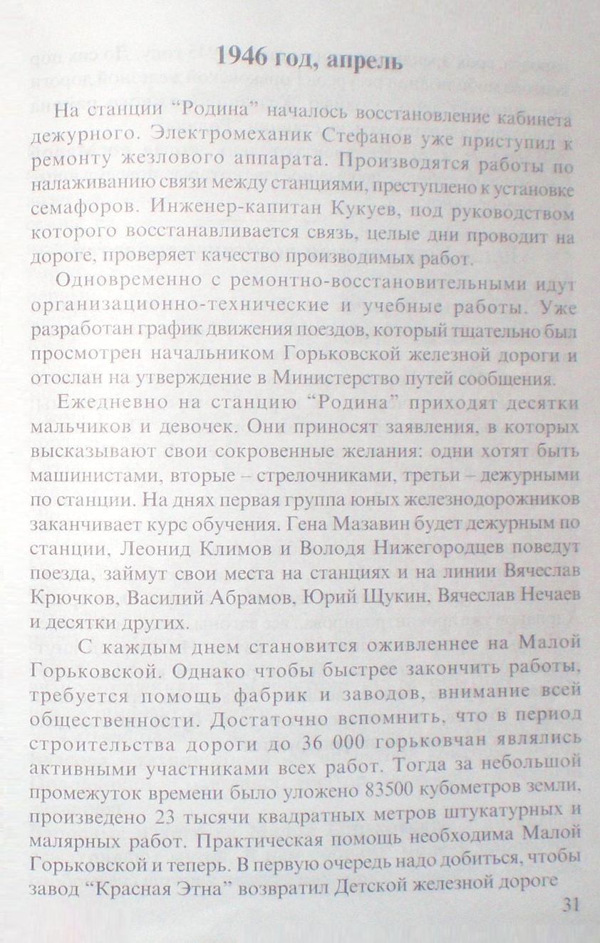 ID: 2253 МАЛАЯ ГОРЬКОВСКАЯ (НИЖЕГОРОДСКАЯ) ДЕТСКАЯ ЖЕЛЕЗНАЯ ДОРОГА КНИГА, ИЗДАННАЯ В 1999 ГОДУ (ЧАСТЬ 1) 122 #Малая_Горьковская_джд #книга 06.01.2008 © [ДАННЫЕ УДАЛЕНЫ] часть 2 — следующая «Малая Горьковская (Нижегородская) детская железная дорога»
