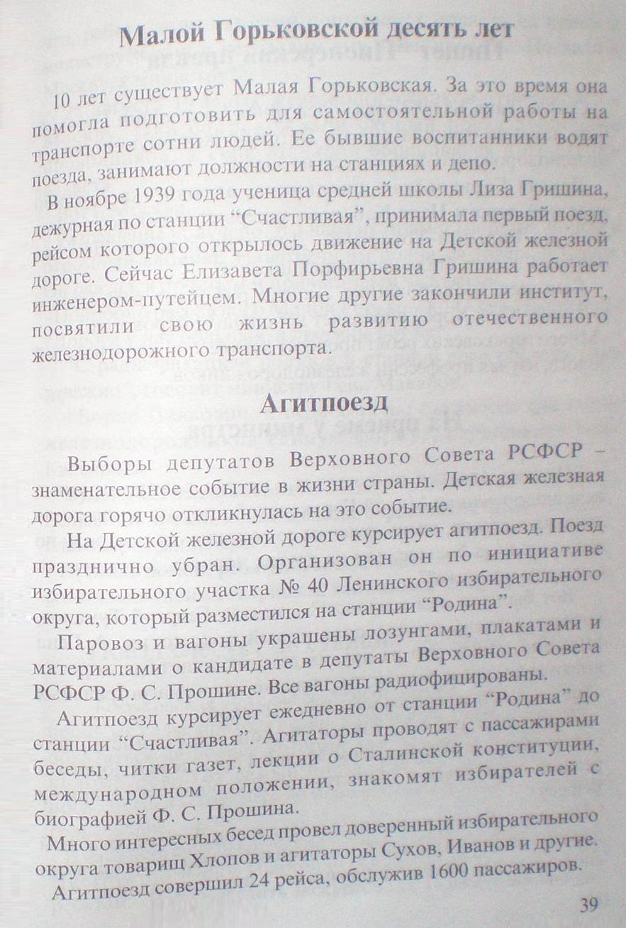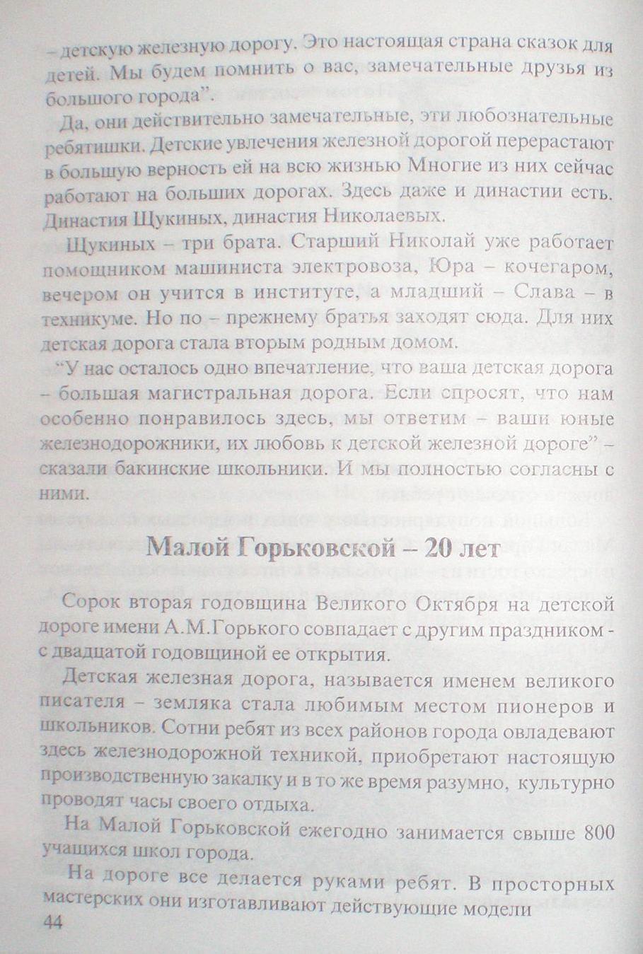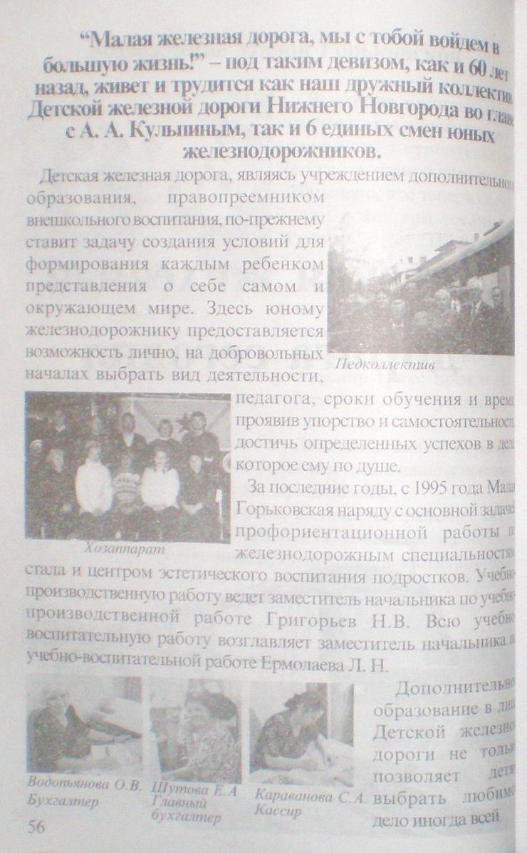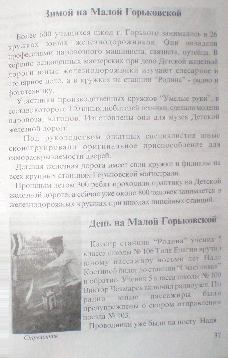 МАЛАЯ ГОРЬКОВСКАЯ (НИЖЕГОРОДСКАЯ) ДЕТСКАЯ ЖЕЛЕЗНАЯ ДОРОГА КНИГА, ИЗДАННАЯ В 1999 ГОДУ (ЧАСТЬ 2)