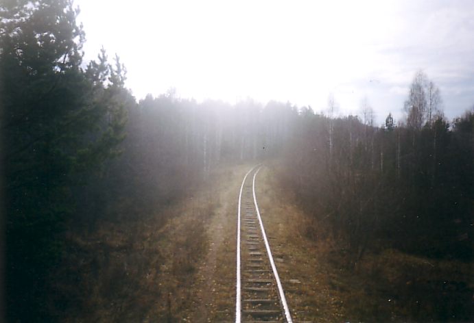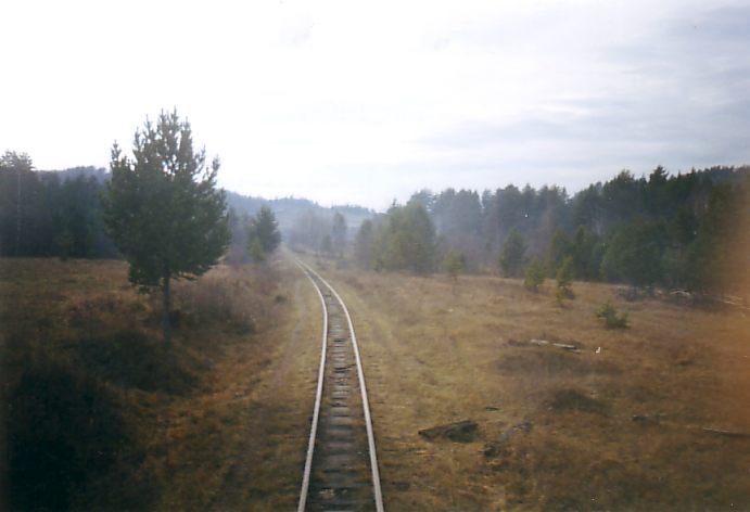 Белорецкая узкоколейная железная дорога на окраине посёлка Улу-Елга. Вид в восточном направлении.
