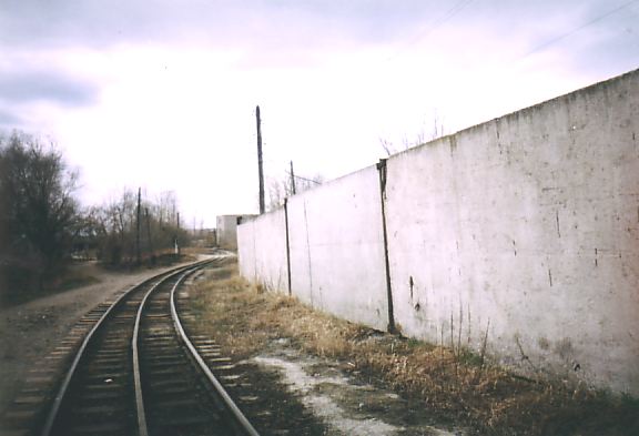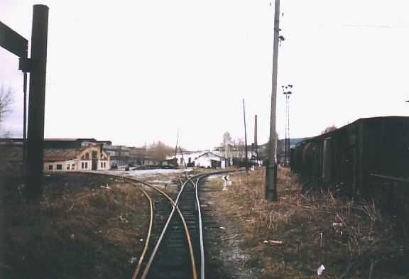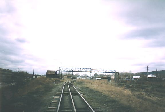 Вид от разрушенного вокзала в южном направлении, в сторону депо.