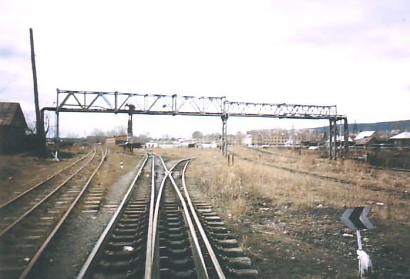 Вид в южном направлении. Справа от пути узкой колеи пролегает путь широкой колеи,