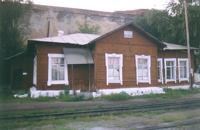 Немногим далее, вид в том же направлении. Справа — главное здание станции Нура.