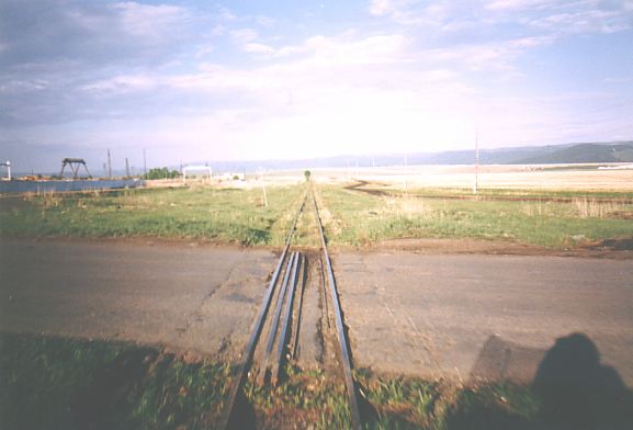 Впереди — подъездной путь широкой колеи, ведущий к Пугачёвскому карьеру.