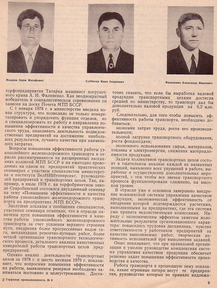 «Узкоколейный железнодорожный транспорт торфяных предприятий Белорусской ССР в 10-й пятилетке» -