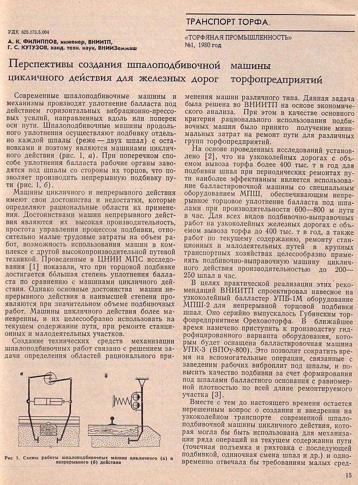 «Перспективы создания шпалоподбивочной машины цикличного действия для железных дорог торфопредприятий» -