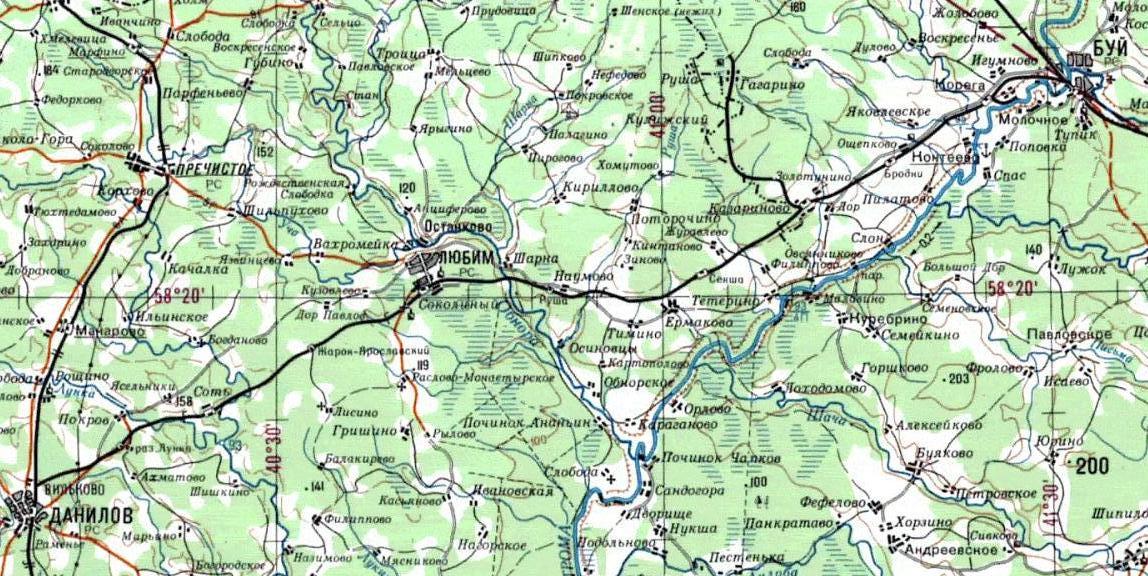 ЖЕЛЕЗНОДОРОЖНАЯ ЛИНИЯ ДАНИЛОВ — БУЙ СХЕМЫ И ТОПОГРАФИЧЕСКИЕ КАРТЫ