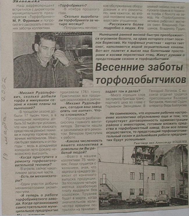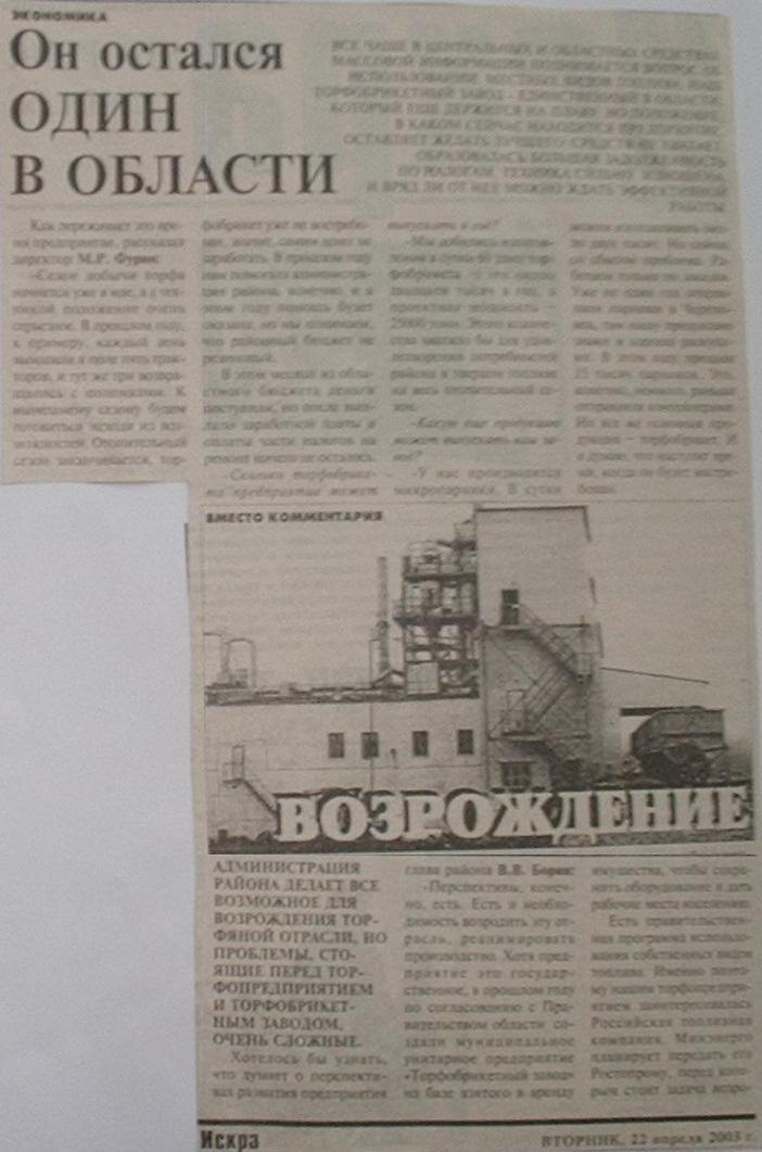 «Торфопредприятие: сегодня и завтра» (материал из чагодощенской