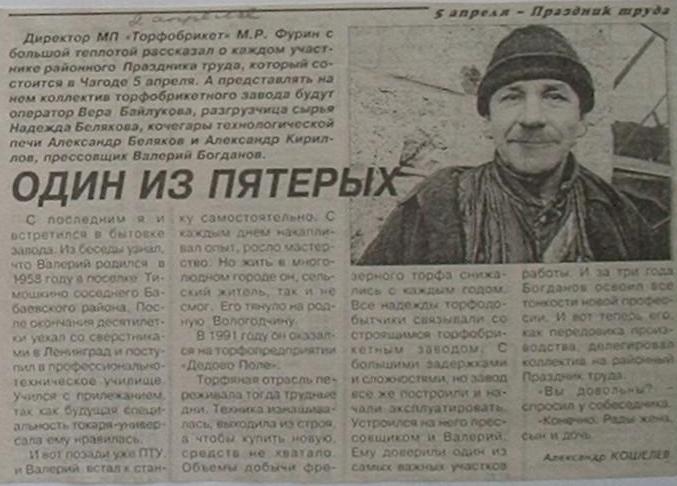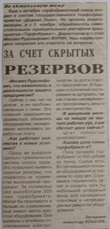 «Брикет пойдёт в реализацию» (материал из чагодощенской районной газеты «Искра», 29.01.1998 года).