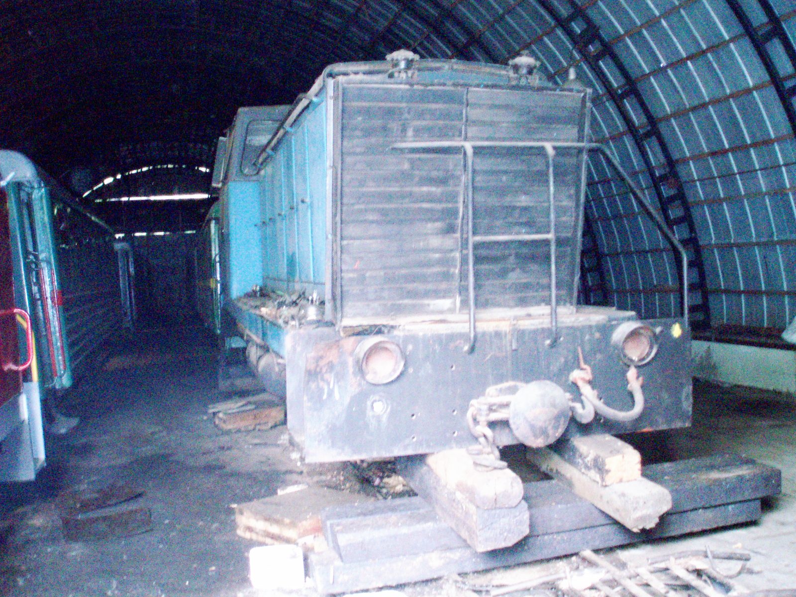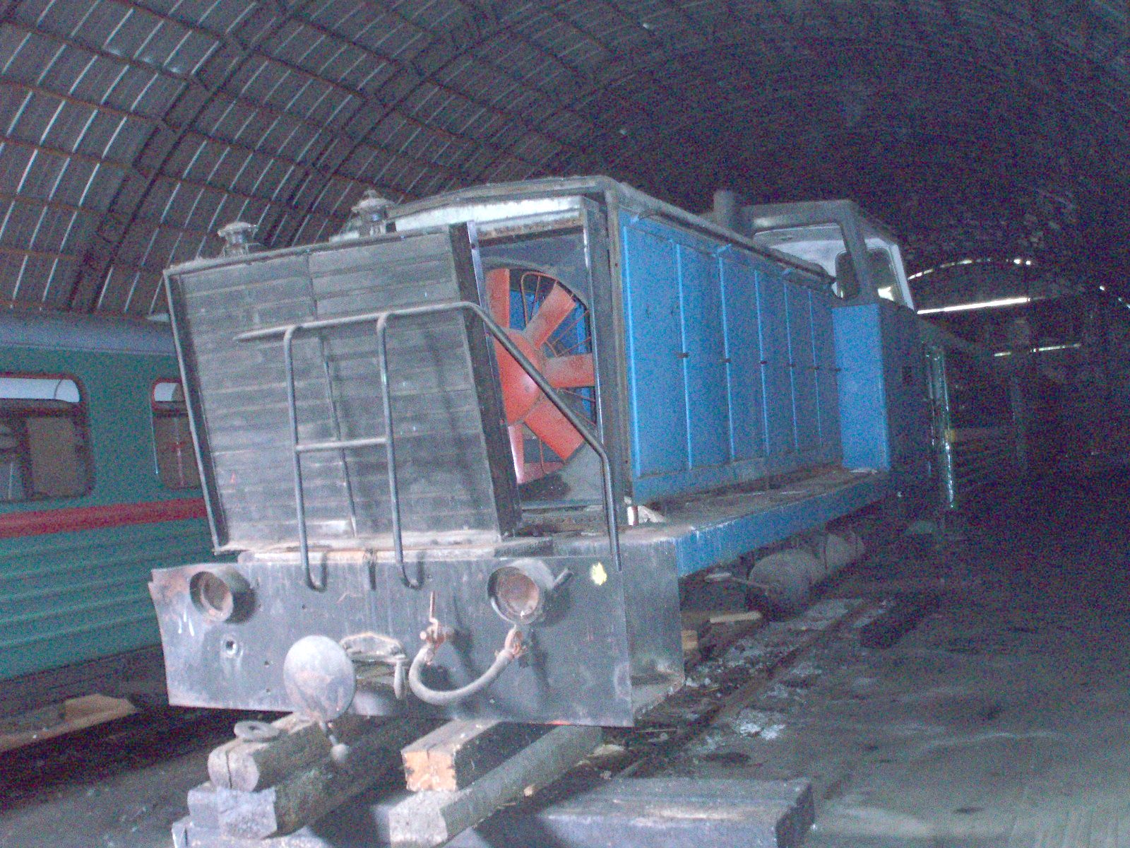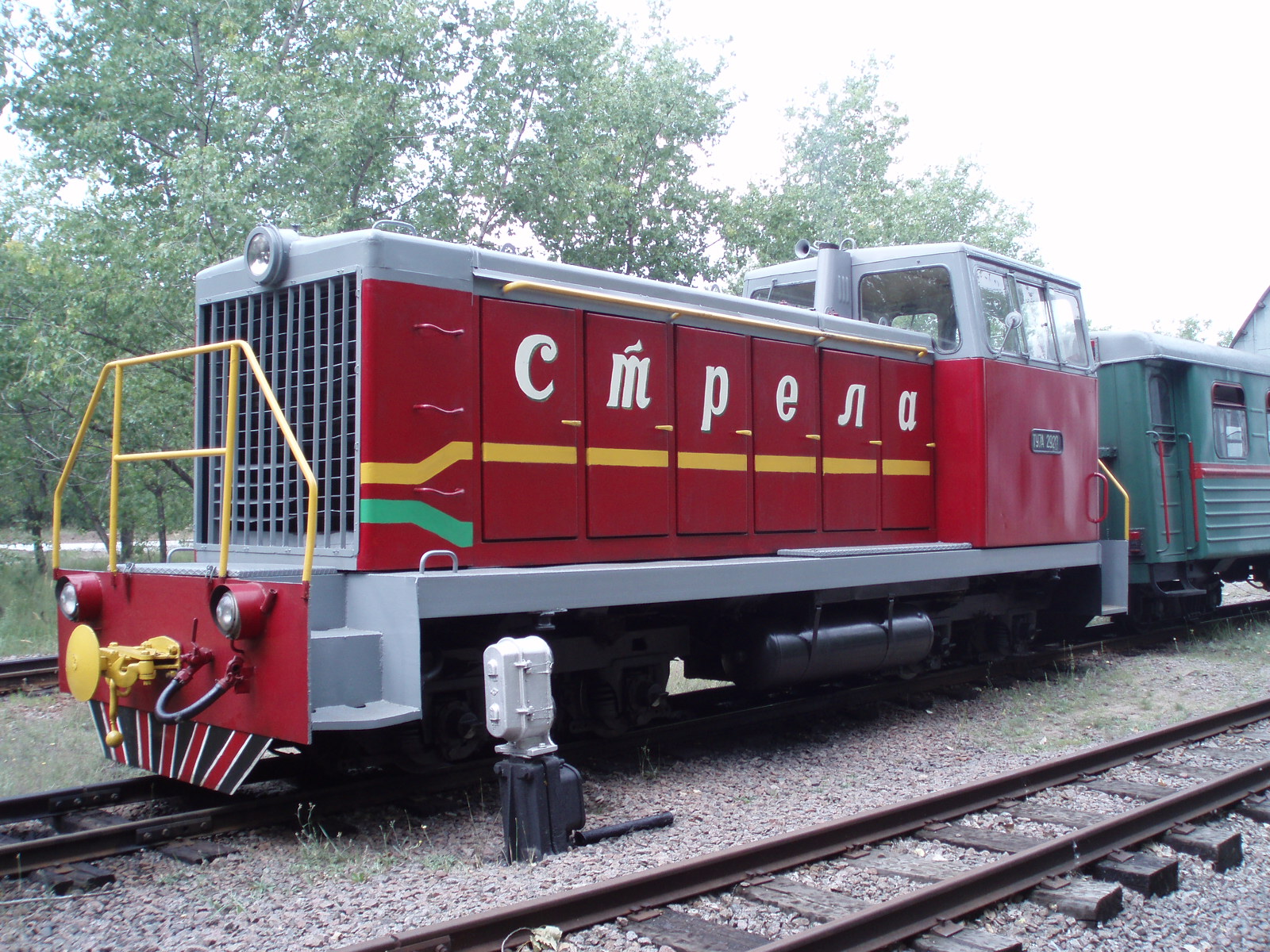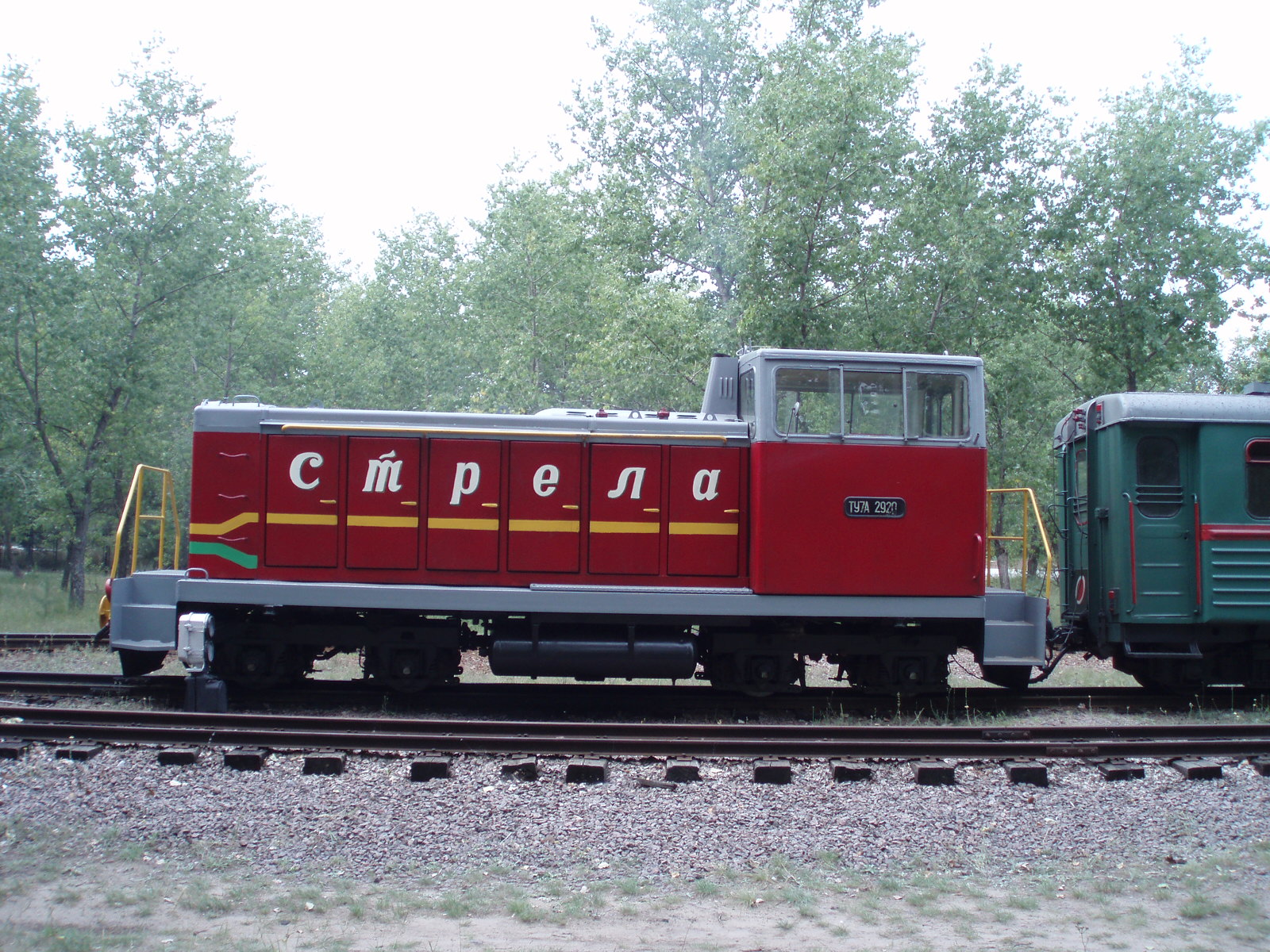 Тепловоз ТУ7-2920 с пассажирским вагоном вблизи депо.