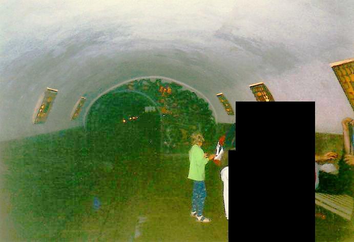 Торцевая стена на станции «Зал Анакопея». Слева — коридор,