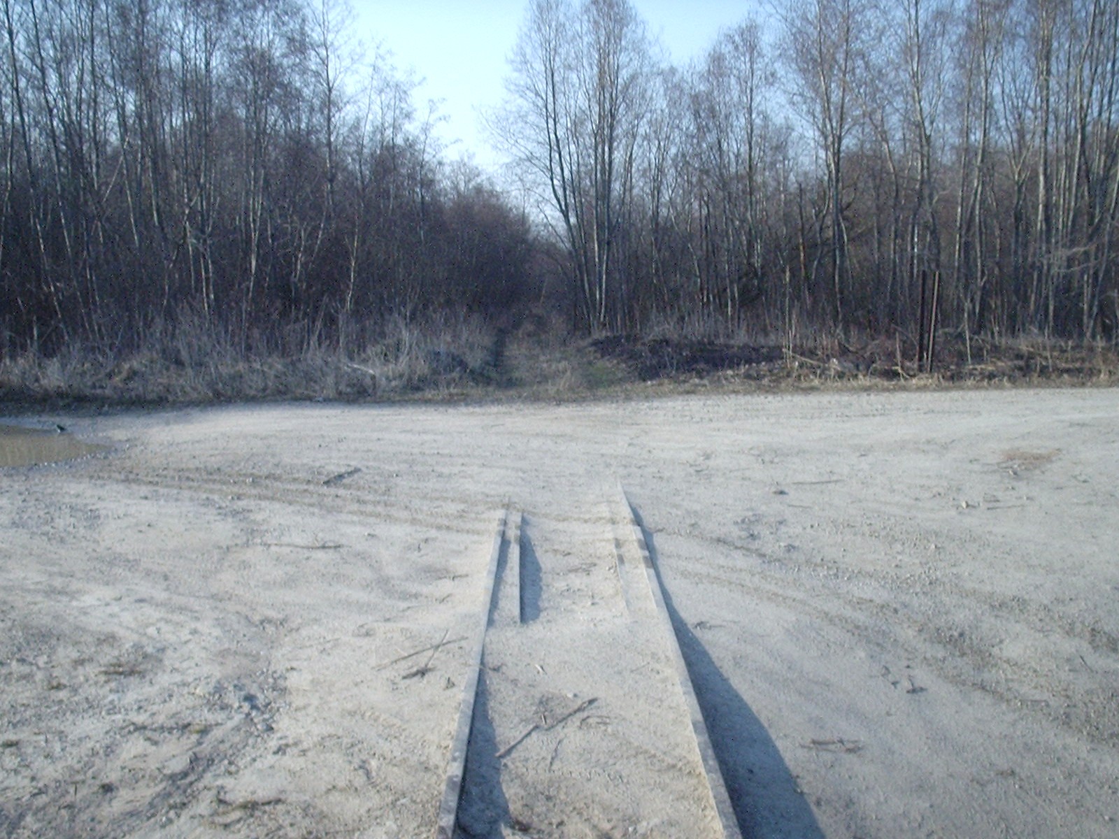 Начало сохранившегося рельсового пути на участке «28 километр». Вид в северном направлении.