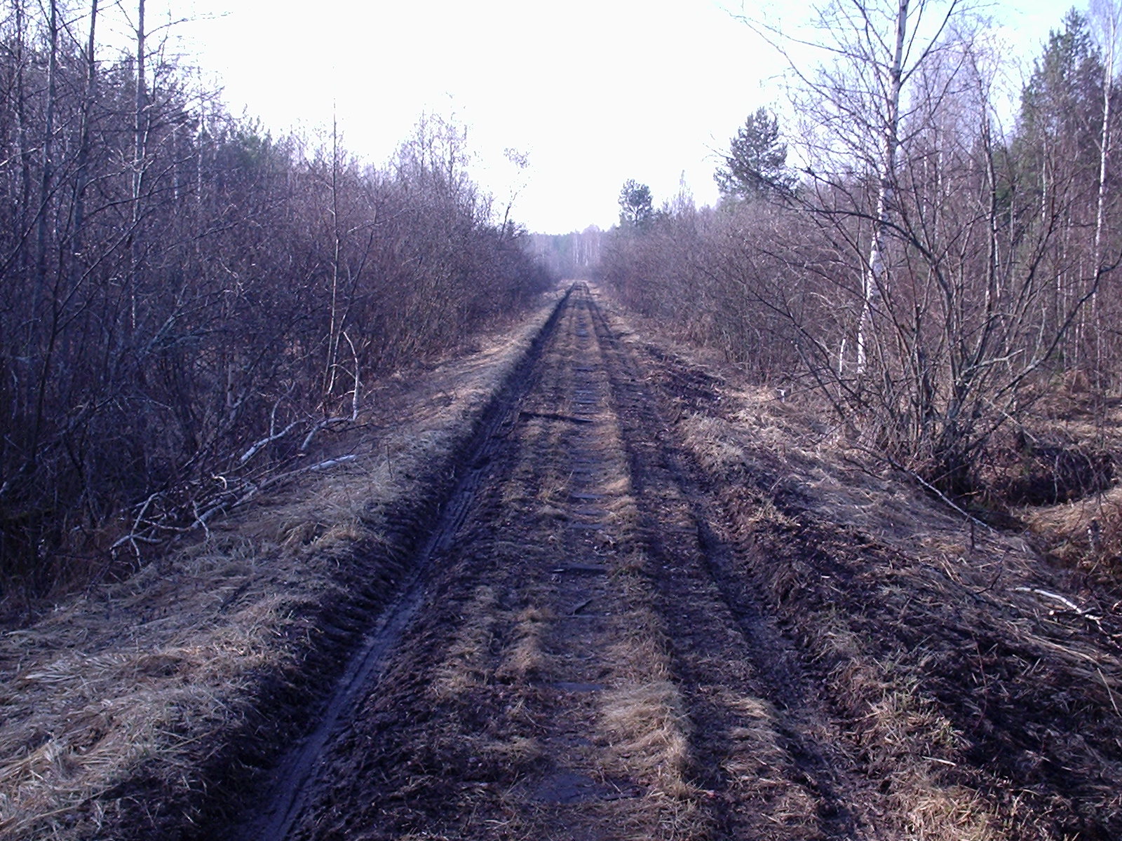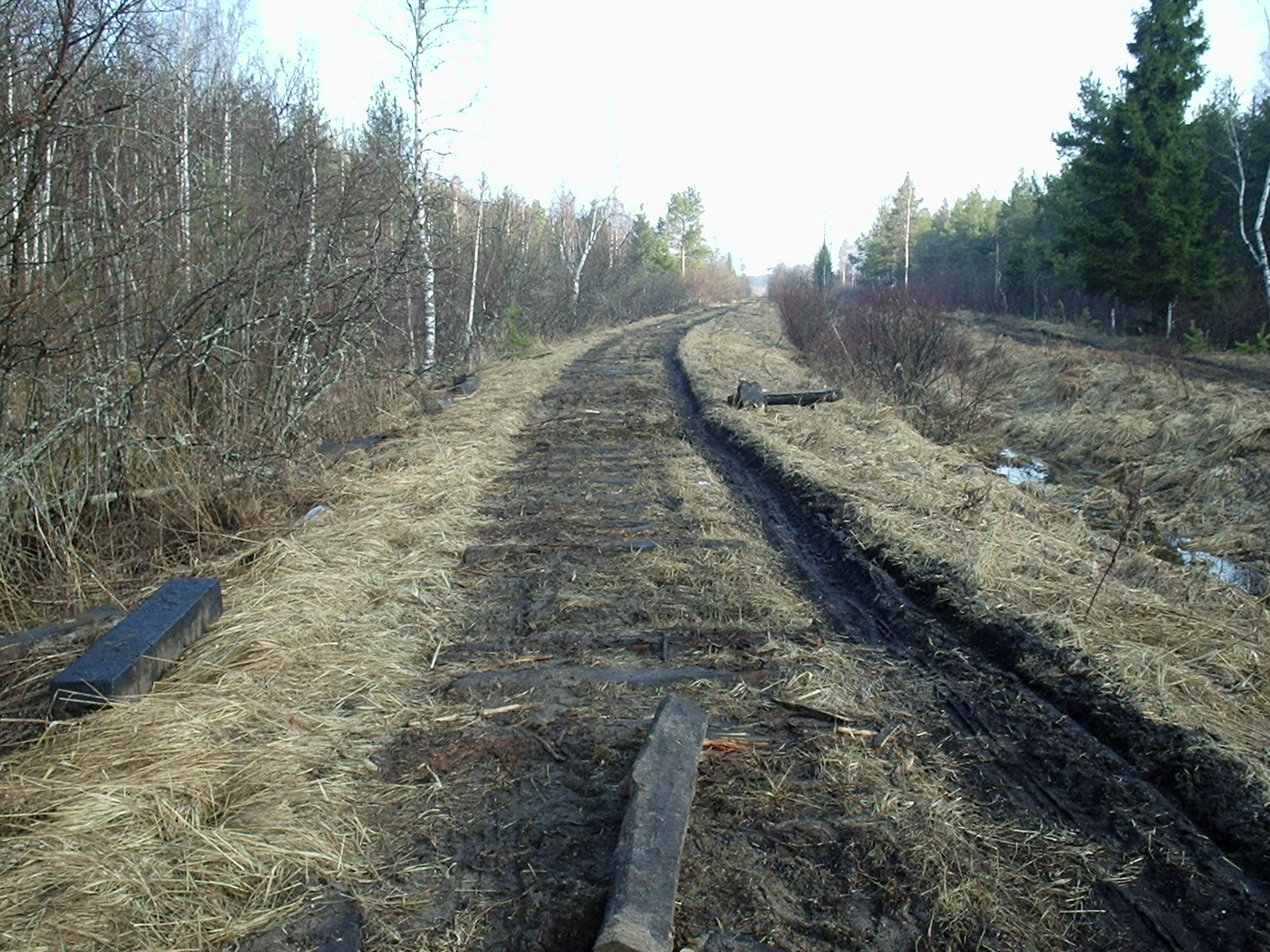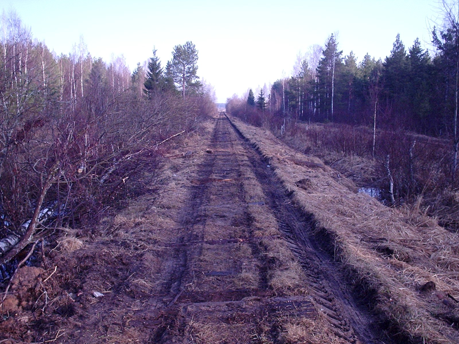 Главная линия узкоколейной железной дороги приблизительно в 1,5 км южнее станции Перегрузочная.