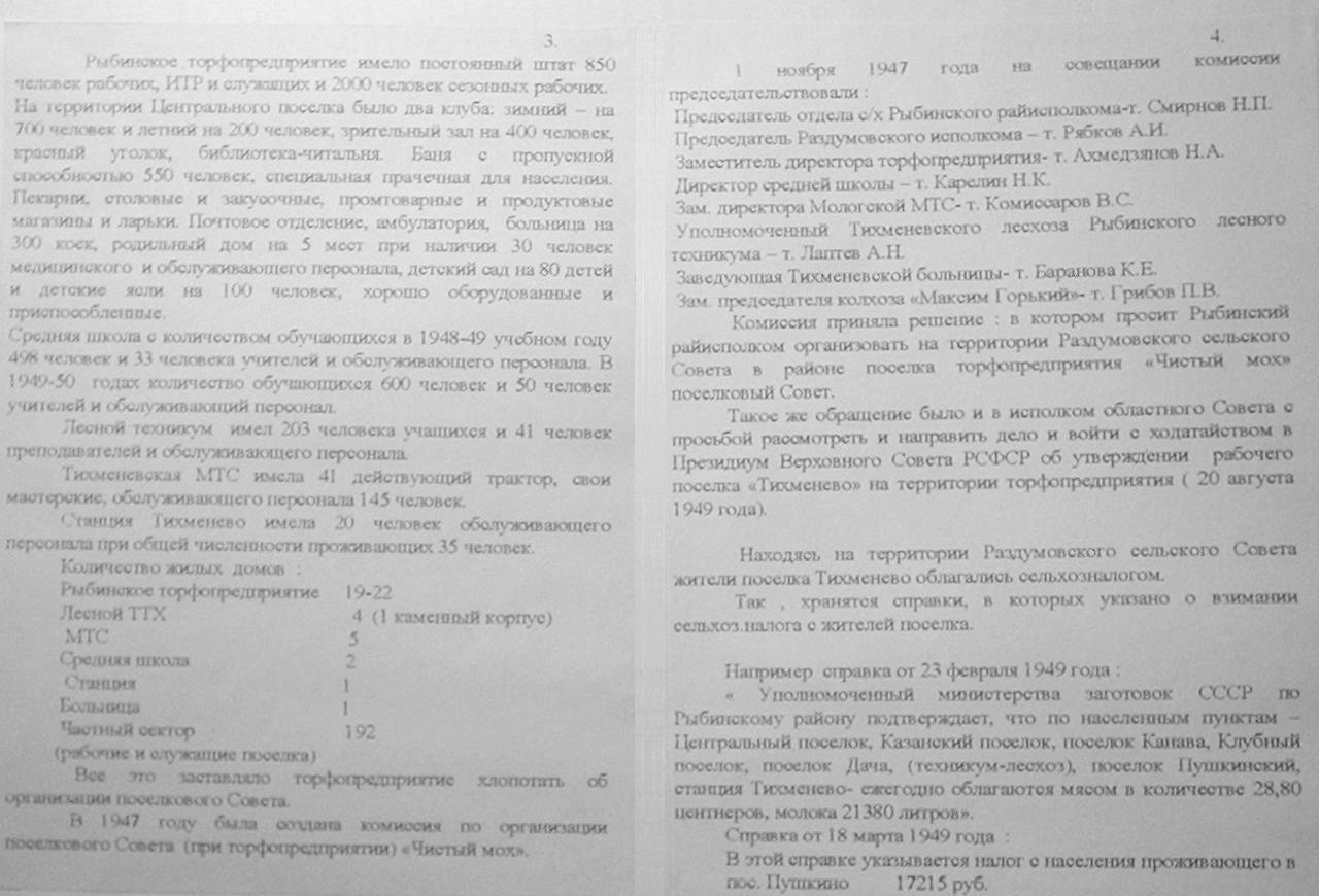 Материал об истории Рыбинского торфопредприятия (1950 год).