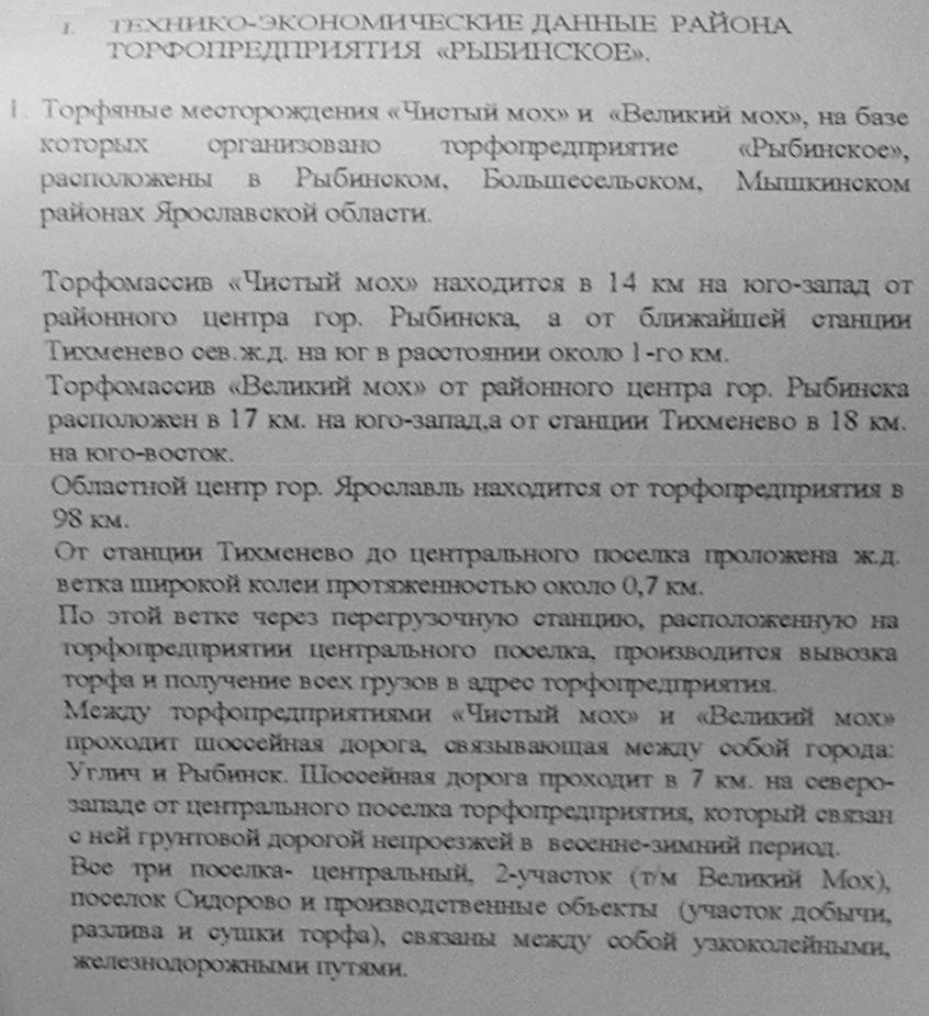 УЗКОКОЛЕЙНАЯ ЖЕЛЕЗНАЯ ДОРОГА РЫБИНСКОГО ТОРФОПРЕДПРИЯТИЯ МАТЕРИАЛЫ ОБ ИСТОРИИ ТОРФОПРЕДПРИЯТИЯ (ЧАСТЬ 1)
