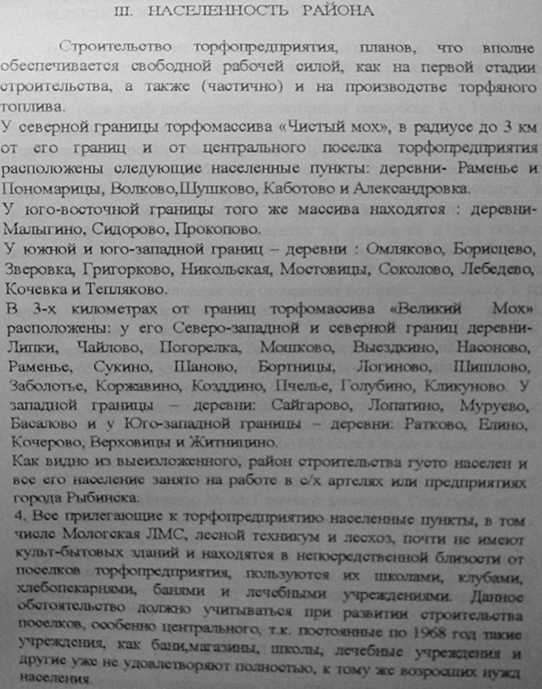 Материал об истории Рыбинского торфопредприятия (1970 год).