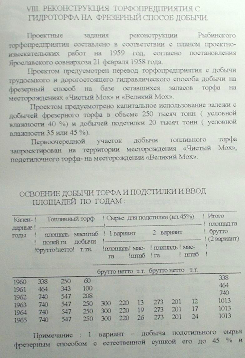 Материал об истории Рыбинского торфопредприятия (1970 год).