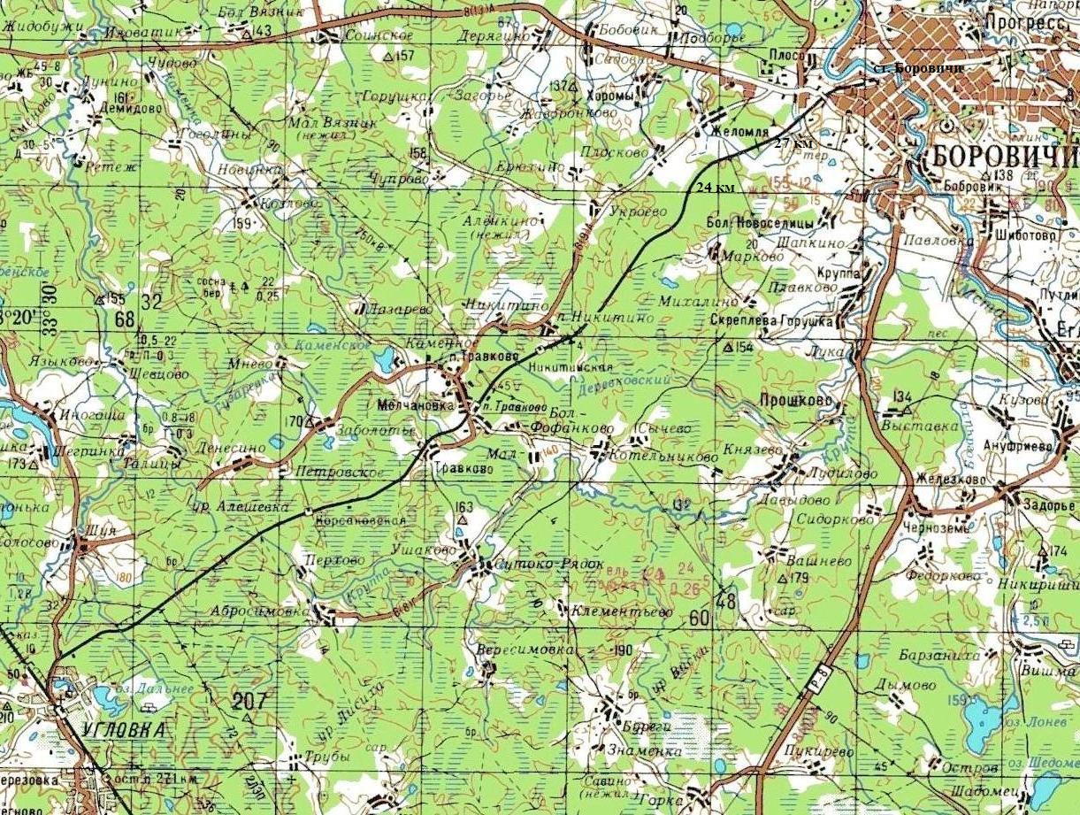 ЖЕЛЕЗНОДОРОЖНАЯ ЛИНИЯ УГЛОВКА — БОРОВИЧИ СХЕМЫ И ТОПОГРАФИЧЕСКИЕ КАРТЫ