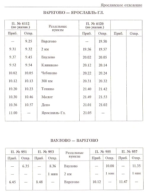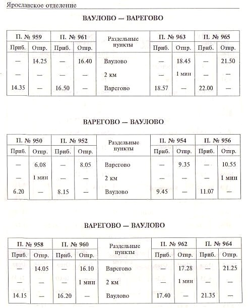 и Ваулово — Варегово (из служебного расписания движения