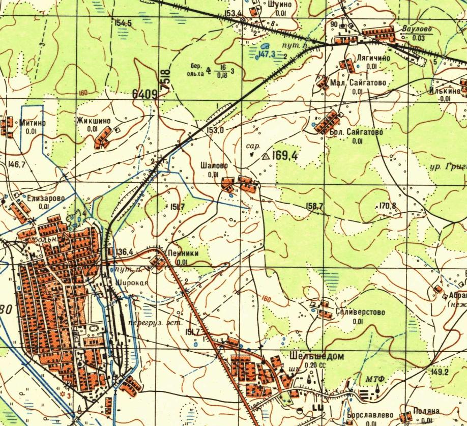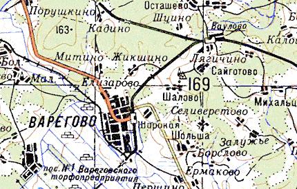 Железнодорожная линия на топографической карте масштаба 1:50 000, изданной в 1991 году. Станция Варегово подписана как Широкая.