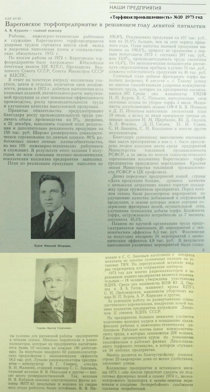 «Вареговское торфопредприятие в решающем году девятой пятилетки» («Торфяная промышленность», 1973 год).