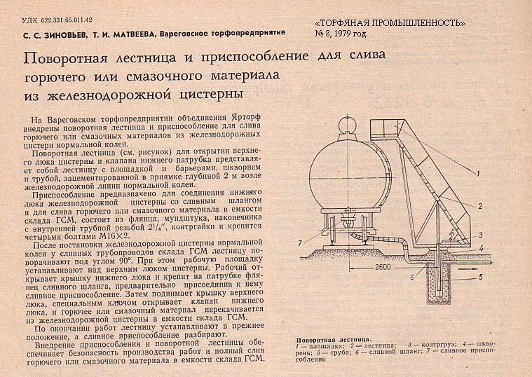 «Поворотная лестница и приспособление для слива горючего или смазочного материала из железнодорожной цистерны»