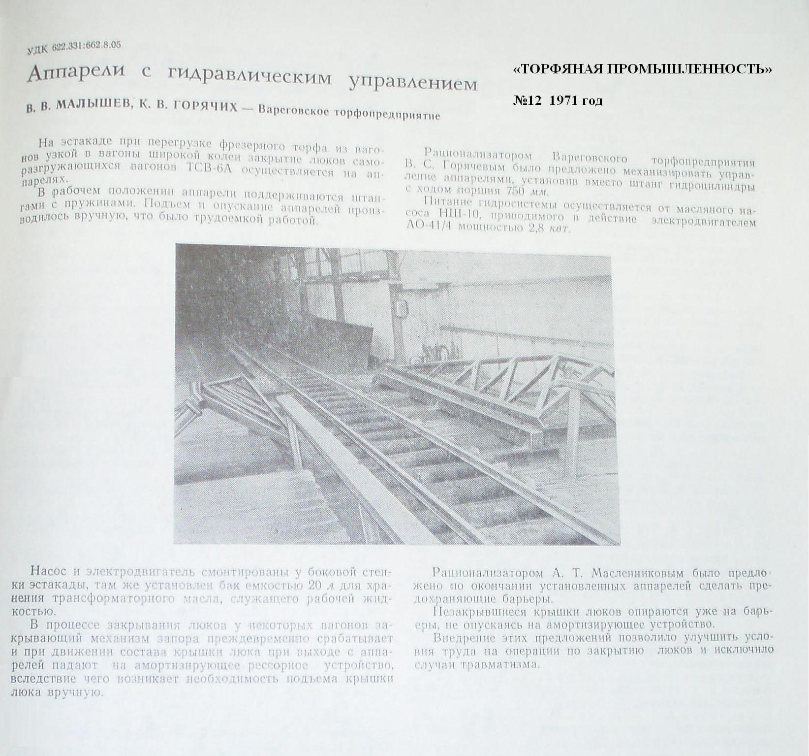 «Аппарели с гидравлическим управлением» («Торфяная промышленность», 1971 год).