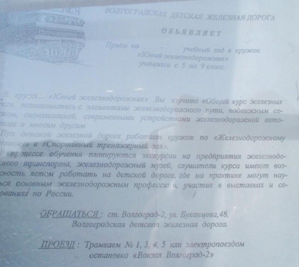 ВОЛГОГРАДСКАЯ ДЕТСКАЯ ЖЕЛЕЗНАЯ ДОРОГА